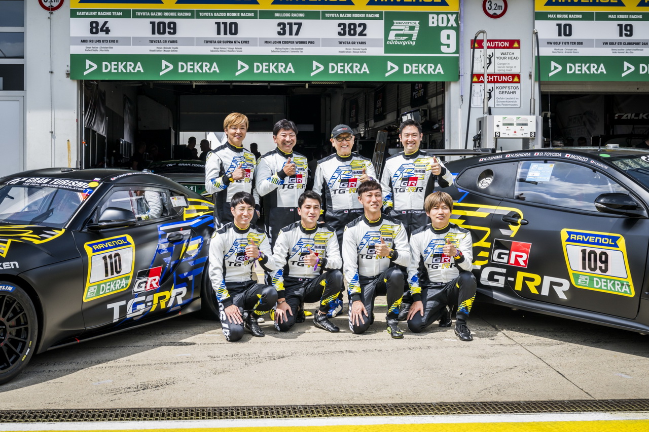 另一輛GR Supra #110則由經驗豐富、征戰耐久賽多年的駕駛陣容:佐佐木雅弘(Masahiro Sasaki)、片岡龍也(Tatsuya Kataoka)、松井孝允(Takayuki Matsui)、蒲生尚彌(Naoya Gamou),完整體現TG-RR車隊豐富的技術陣容與跨世代接棒。最終也以126圈,組別第四的成績,完成本次紐柏林24小時耐久賽。
