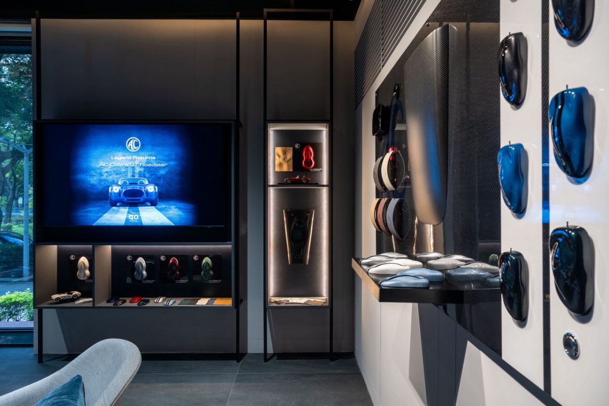 AC Cars展示中心定址敦南林蔭大道,空間採用大量弧形線條呼應品牌及車款特色,品牌歷史牆映入眼簾,一覽傳奇的誕生,藍色烤漆全碳纖維接待桌由原廠專屬碳纖維製造部門精心打造,別有風格及識別。吧檯設計結合牆上 Cobra車身線條的裝飾藝術,營造出舒適雅緻的氛圍,並提供各式飲品,讓賓客得以放鬆心情、自在享受。寬敞舒適的獨立車輛選配室,讓貴賓盡情發想獨一無二的車款,從外觀車色、內裝皮革與布料等各式搭配,亦可與原廠合作打造富有個人化特色的AC Cobra GT;此外,AC Cars Taiwan 整合汽車檢診區於展示空間內,以英國國旗為設計的檢修燈做為主視覺,採用飛行技師概念,由具備多年超豪華汽車品牌經驗的售後服務部主管,利用檢診區亦或是高雄協力廠區為客戶的愛車進行檢測、故障排除及維修保養。2年不限里程的原廠保固期間,總代理誠萬汽車更提供每年一次免費全罩式拖車運送服務,打造車主貴賓隱密且完善的售後維修體驗;未來,AC Cars 也將推出系列品牌精品,並同步引進台灣,從駕馭到生活,體驗獨有的英式風格細節。誠萬汽車總經理張力夫說道:「 AC Cars 以台灣作為進軍亞洲市場的首站,對我們來說意義非凡。透過全新旗艦展示中心的啟動,不僅將AC Cars的經典與創新精神帶入,更希望藉此為層峰車主開創一個全新的駕馭體驗。未來,誠萬汽車將持續引進更多車款,與原廠緊密合作,提供最完善的品牌服務與售後支援,為超豪華汽車市場注入新一波成長動能。」
