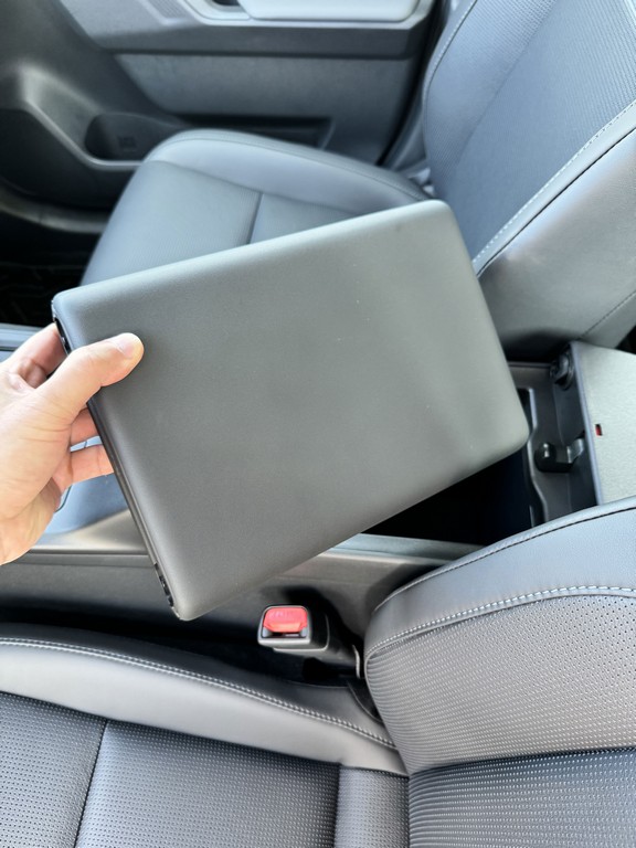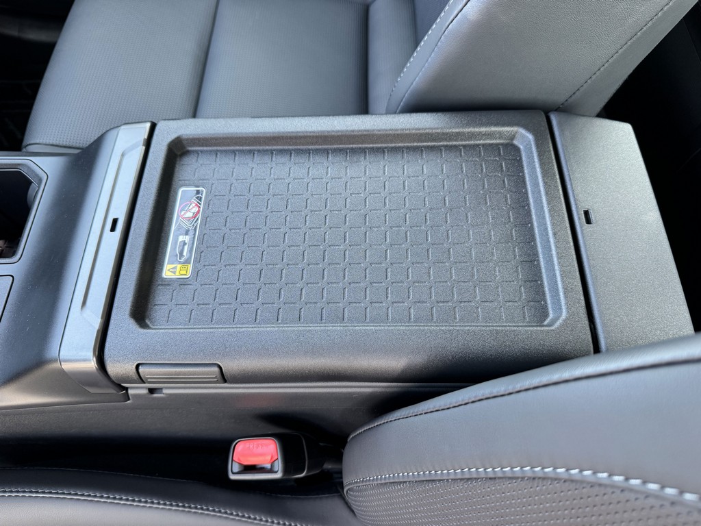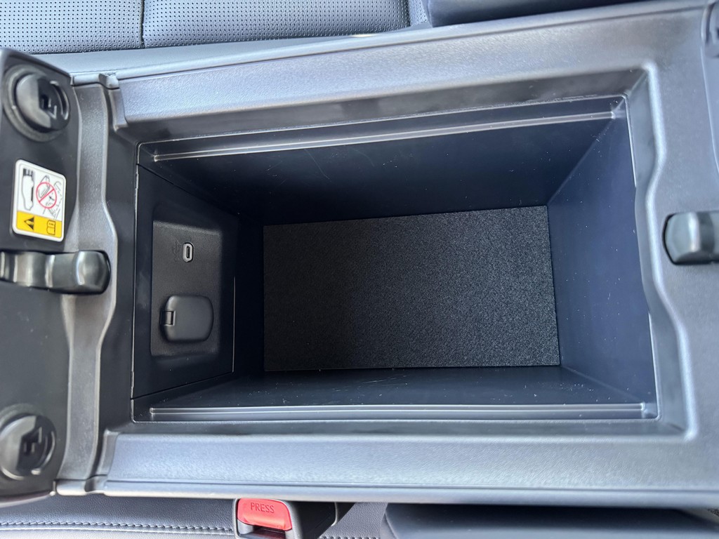 ▲前座中央扶手以皮革包覆,觸感柔軟,開啓方式為左右都可打開的設計,而且扶手面板還可拆卸反面安裝,成為一個淺淺的置物區。至於扶手下的空間不算小,內部還有一個USB Type-C插孔和一個12V電源插孔。