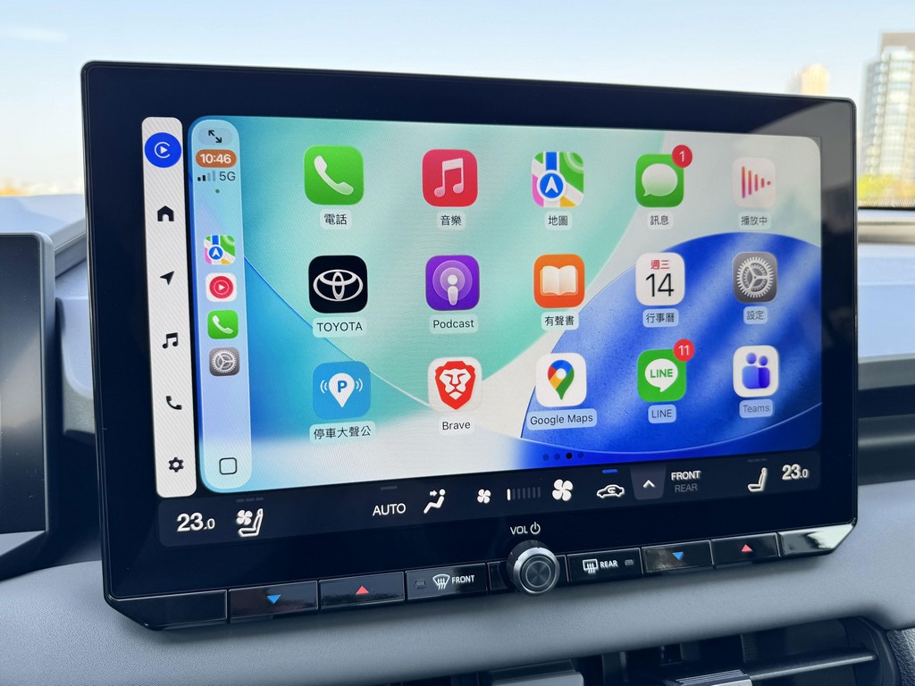▲RAV4旗艦版標配有投射式HUD抬頭顯示器,這個新的HUD投射距離更遠,畫質也很好,駕駛的視線不用移動太多就能獲得想要的訊息。此外,Apple CarPlay和Android Auto智慧手機的導航路線指引也會出現在HUD上。