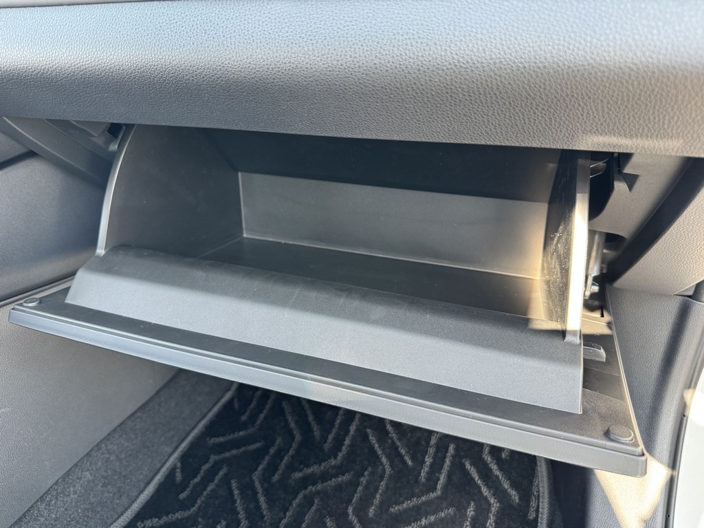 ▲儀表台前乘客側設有一個長型置物區,可放置手機,鑰匙的小物品,下面的手套箱空間不小,放好幾瓶礦泉水以及一些書本是没問題的。