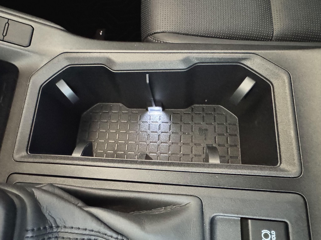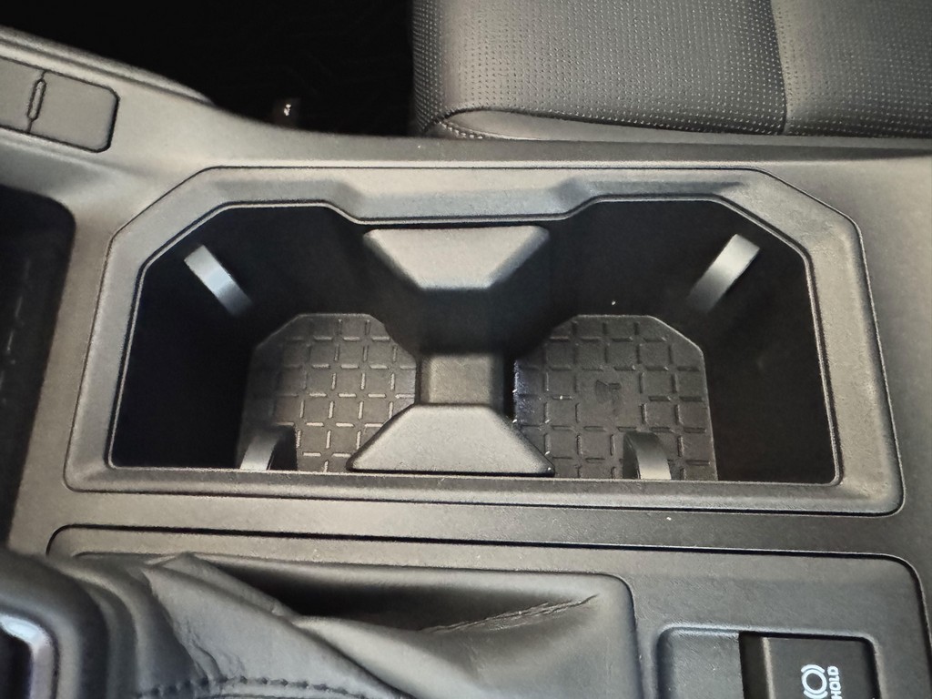 ▲中央鞍部左側是E-CVT 無段自排變速系統排檔桿以及電子手煞車與Auto Hold操控鍵,右側為兩個前座置杯架。