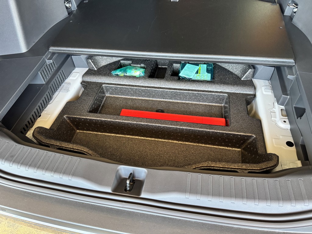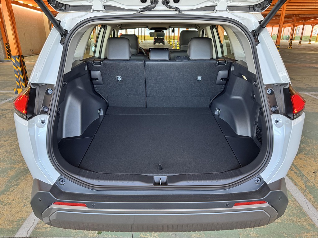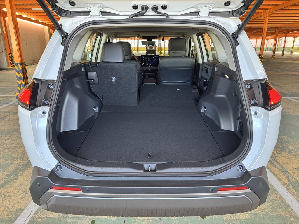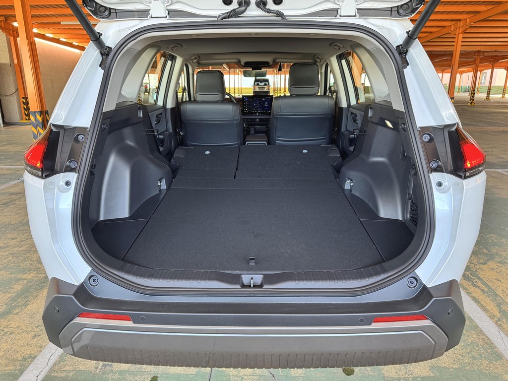 ▲第六代RAV4的後行李廂空間與第五代差不多,全新RAV4的標準容積為514公升,將具備6/4分離傾倒的第二排椅背全部放倒時為749公升。掀開行李廂底板,裡面有補胎工具,打氣機和拖車勾。RAV4也有電動尾門,而旗艦、Adventure、GR Sport更具備足踢感應式電動尾門。