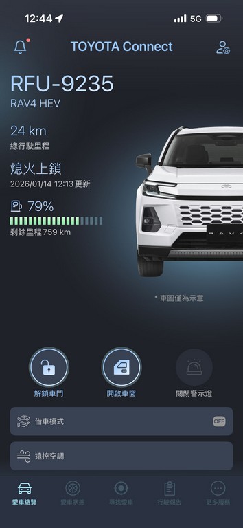 ▲六代RAV4旗艦、豪華、尊爵、尊爵+的開門把手採用與車身同色的塗裝,並具備Smart Entry車門啓閉系統。此外,車主也可加入和泰會員,然後下載安裝Toyota智聯APP,就可透過手機遠端輕鬆遙控操作車門鎖、車窗、天窗、空調、自動碰撞通知、多模式借車等功能,以及監控掌握愛車狀態。