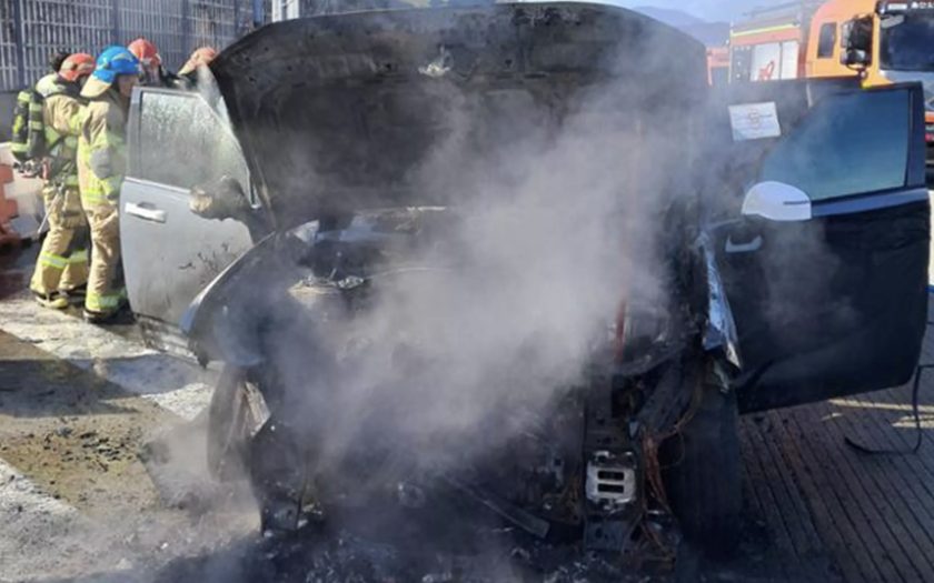 這起事故發生在現代汽車位於韓國蔚山的生產基地附近。根據當地報導指出,這輛身披偽裝貼紙的 Santa Fe 原型車在行駛途中突然起火。所幸駕駛在火勢失控前及時逃生,並未造成人員傷亡。然而,消防隊趕到前火勢已相當猛烈,最終車輛前半部被燒成廢鐵,引擎室與車頭造型已完全熔毀,僅剩下焦黑的骨架。