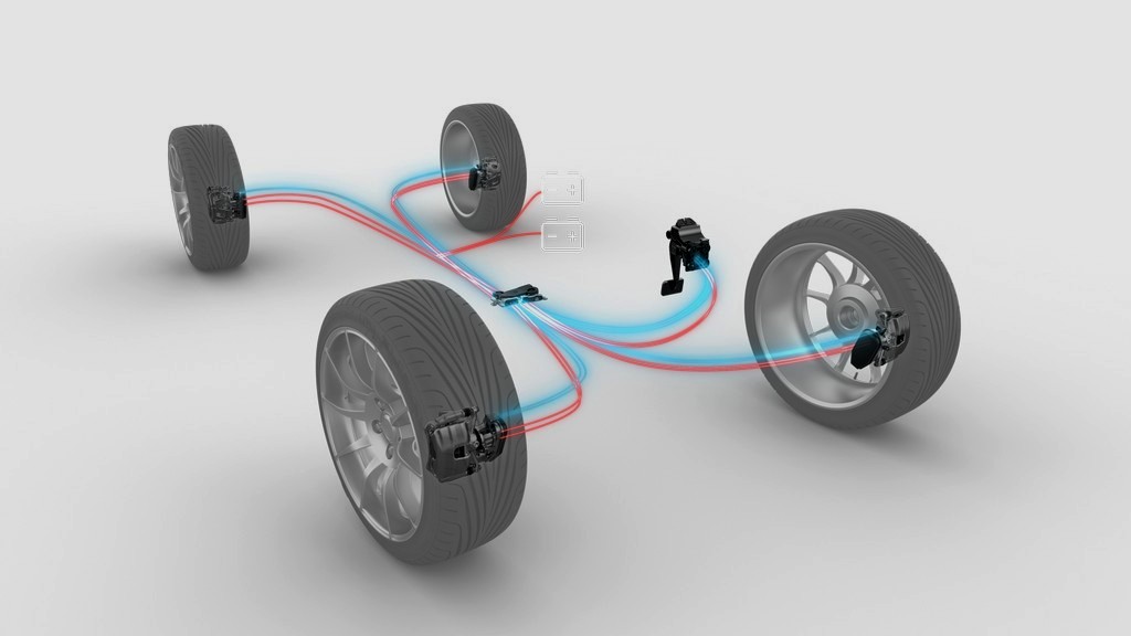 傳統煞車靠液壓分幫將踏板施力化為油壓,推動卡鉗夾住碟盤;而線控煞車則完全不同。線控煞車是當駕駛踩下煞車踏板後電子訊號會測量力道,然後卡鉗內的電動馬達會直接施力夾緊煞車碟盤。整套系統不再需要煞車油、不用總泵或油管,不靠油壓產生制動力量,而是全由電子控制。