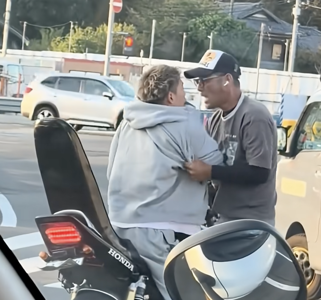 老編沒有看到影片之前發生了什麼事,但是標題是說騎士在等紅燈時炫技拉轉,結果旁人怒不可遏地對他大罵。影片開頭,大叔已經口頭告誡,沒想到不服輸的少年再度拉轉來示威,少年更沒想到他差一點被打,更沒想到他因此成了日本網友公幹的對象,一面倒的支持大叔為民服務,幹了警察應該做的事。