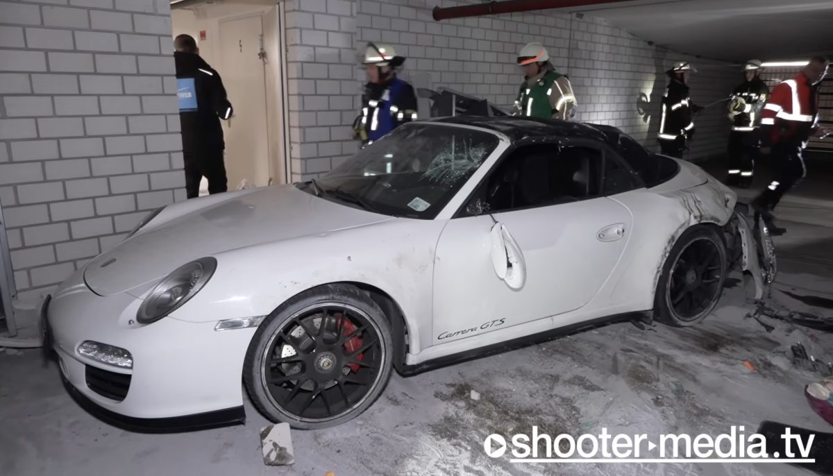 當然你會想說,是不是之前英國那對剛買保時捷的92歲夫妻?不是的!這是是發生在本周一(11/4) 的德國路德維希堡(Ludwigsburg)。一名90歲男子駕駛保時捷911 Carrera,在市政廳地下停車場時,因不明原因倒車撞上混凝土牆。強烈的衝擊力竟讓牆面被撞破,整輛車懸掛在大樓通風井上方,離地約五公尺,場面驚人。