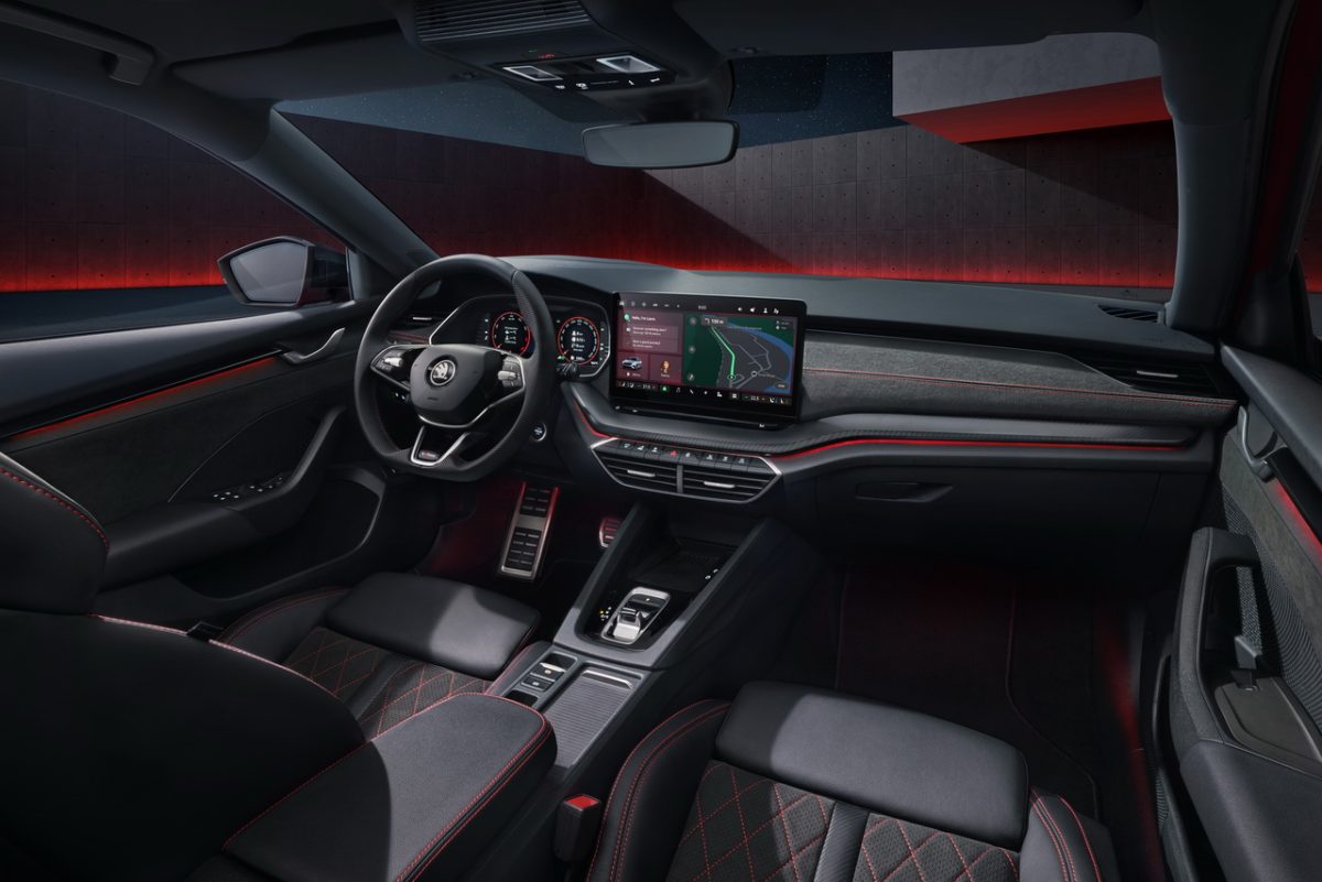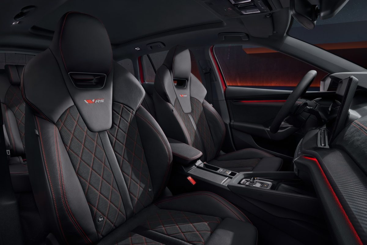 在台灣每賣出3台Octavia中,就有1台是RS車型,作為Škoda RS家族的中流砥柱,將運動性能與智慧科技完美結合,成為引領新世代車型的代表。外觀設計上,RS車型充分展現與眾不同的熱血運動風格,並融入了RS專屬的黑化元素,包括全新RS標誌、黑色水箱護罩、後視鏡外殼、窗框、尾翼及19吋RS專屬輪圈,處處彰顯動感與力量,與紅色煞車卡鉗的鮮明對比,使整體造型更顯動感。同時,RS專屬前保桿和跑車式排氣尾管設計,搭配全LED尾燈、序列式方向燈及離家/返家動畫展演功能,為車主提供前衛且充滿未來感的視覺體驗;內裝部分,採用頂級材質及運動化設計,Suedia跑車座椅以紅色滾邊縫線精細點綴,並搭配RS專屬碳纖維飾板,營造出動感十足的座艙氛圍。不僅如此,雙前座更是配備了八向電動調整,並內建兩組記憶及按摩的功能,確保駕駛與乘客皆能享受極致舒適的乘坐體驗。