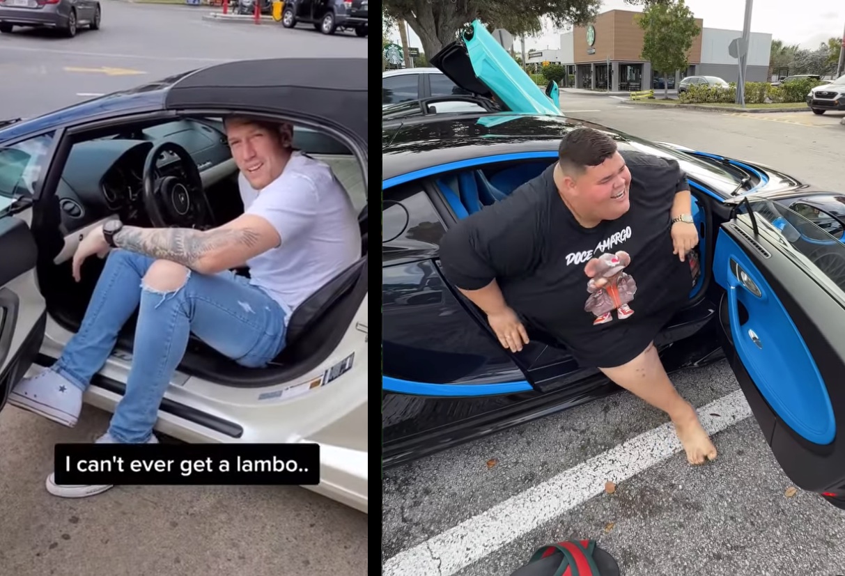 上面影片是美國216公分長人YouTuber BigBeauBrown 試坐進Lamborghini 小牛的窘境,根本是折磨。有不少NBA球星就是買超跑活受罪。下面影片是巴西”重量級”網紅gordaodaxj示範坐進一輛Bugatti Veyron。