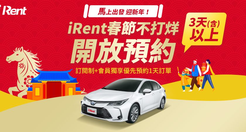 共享移動領導品牌 iRent即日起開放2026春節早鳥預約,不只「租越久、省越多」,同步推出全新「時時回饋計畫」,累積用車時數可兌換iRent汽車折抵券。今年iRent首 …