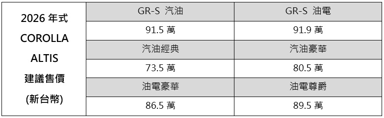 TOYOTA近年積極導入GR 86、GR SUPRA、GR YARIS等多款性能車型,並舉辦GR Fan Festival及COROLLA Cup統規賽,以專業賽事推廣「不斷突破、持續向前」的GR品牌精神。隨著COROLLA CROSS GR SPORT與COROLLA ALTIS GR SPORT等級同步升級,透過運動化外觀與駕馭感受的提升,進一步擴大GR品牌滲透力,持續深化品牌魅力。
